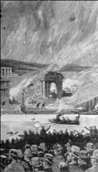 1896 präsentiert Robert William Paul "lebende Bilder" mit einem Gerät namens "Theatrograph" (soetwas Ähnliches wie eine 35mm-Kamera). Gut möglich, dass er mit diesem Gerät eine Bühneninszenierung oder ein Feuerwerk-Spektakel unter dem zugkräftigen Pompeji-Titel abgefilmt hat. Das Werk hat keine Spuren hinterlassen. Nur eine einzige Quelle nennt diesen Film: Das Standardwerk The Epic Film). Unser Bild zeigt einen solchen pyrotechnischen Event (siehe auch Ben Hur von 1907 mit den Kulissen und Stuntmännern einer solchen Show). |